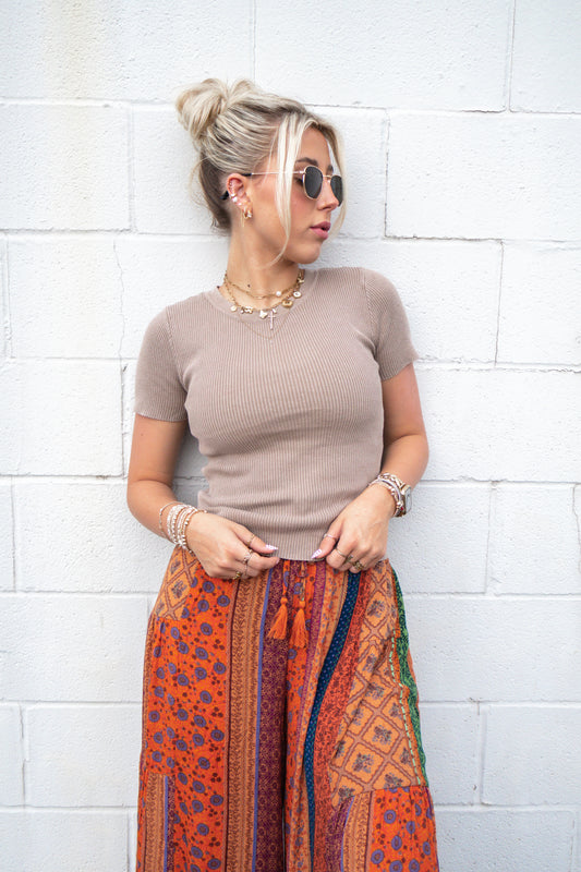 Ribbed & Radiant Drop Shoulder Top (Lt Mocha)