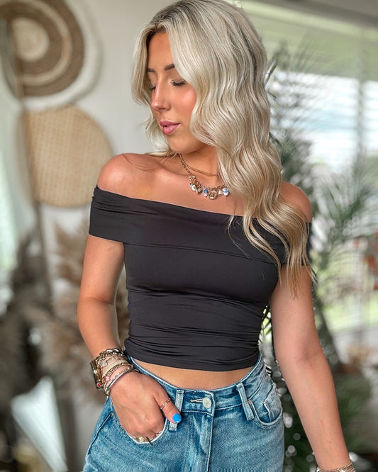 Off-Shoulder Contour Top (Black)