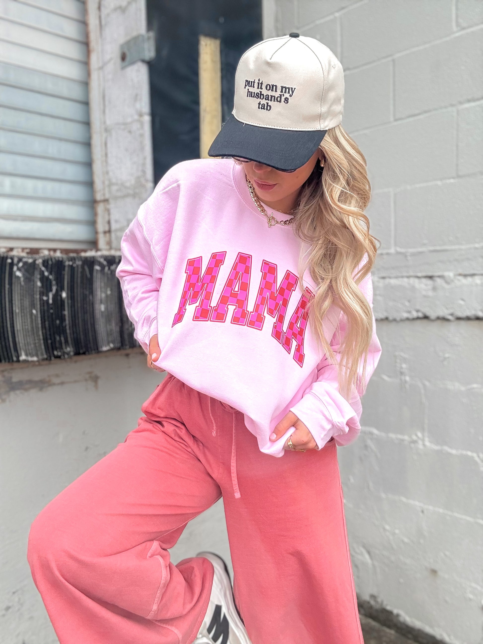 Pink Checkered Mama Sweatshirt (Pre-Order)